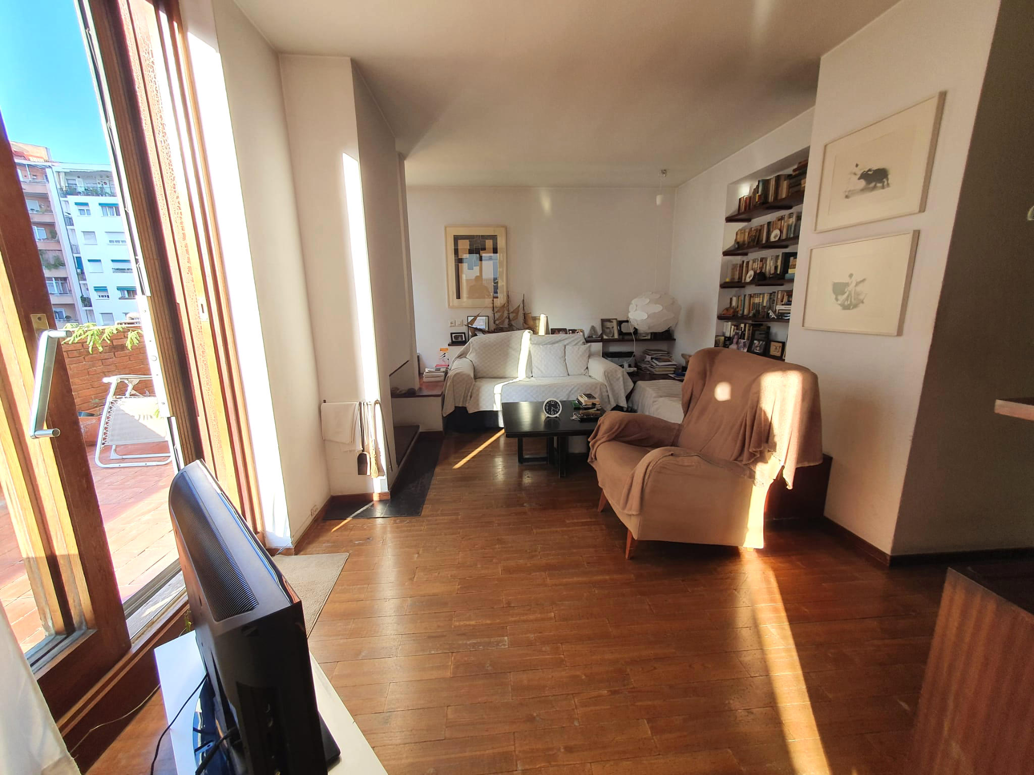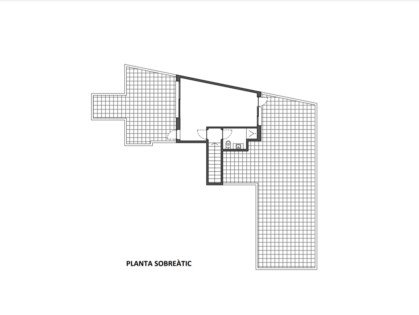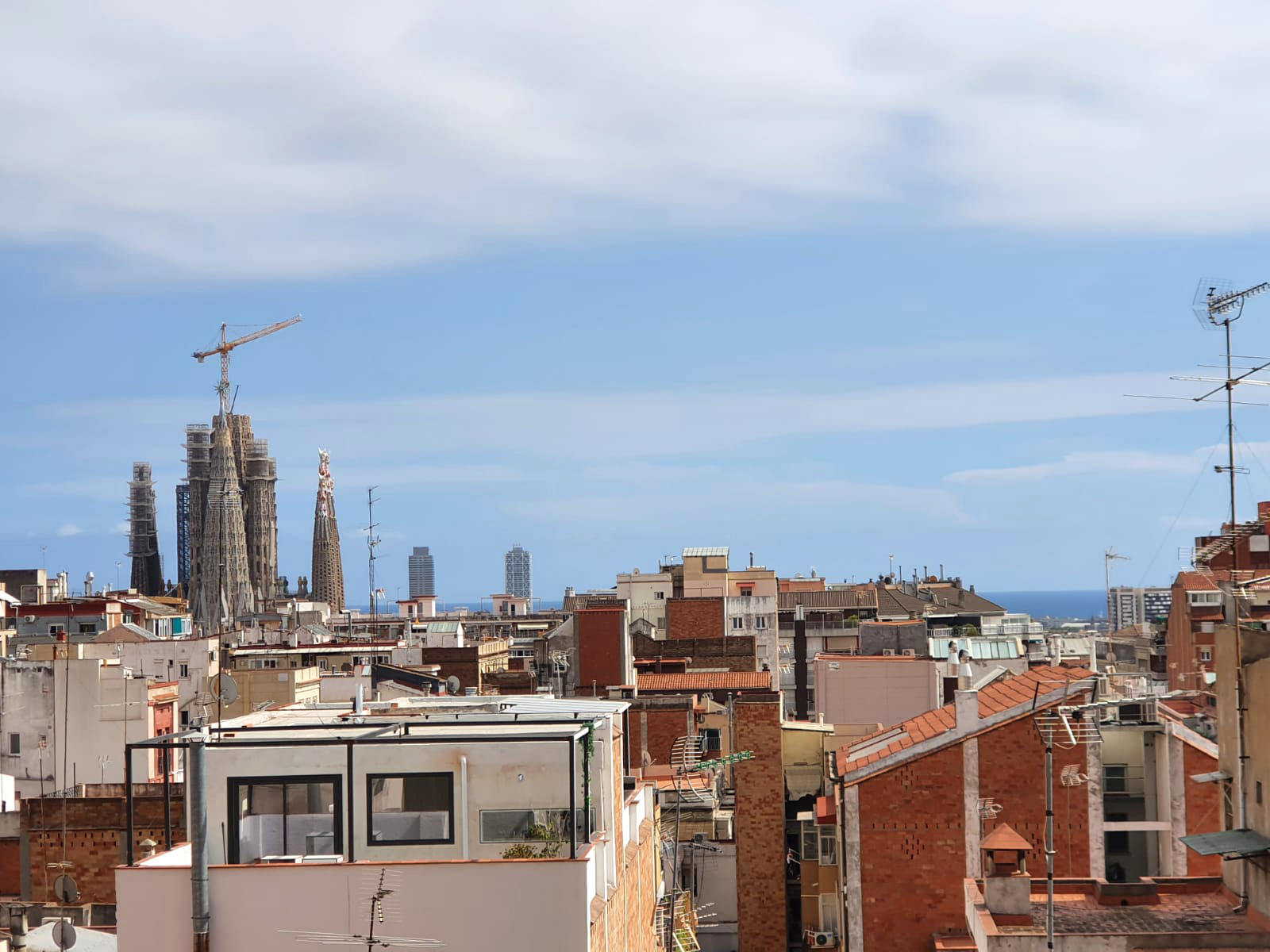 • Planta Sobreàtic: (habitatge 28m2, terrasses 55m2): àmplia sala multiús amb bany propi. Té diversos punts de ventilació, de manera que és possible crear 2 dormitoris addicionals, 2 despatxos, estudi, màster suite, sala jocs. Disposa de 2 terrasses també en l’àmbit d’habitatge, amb gran privadesa i boniques vistes a la Sagrada Família i al mar. Ideal si es vol “ampliar habitatge” mitjançant pèrgoles, carpes o tancaments.