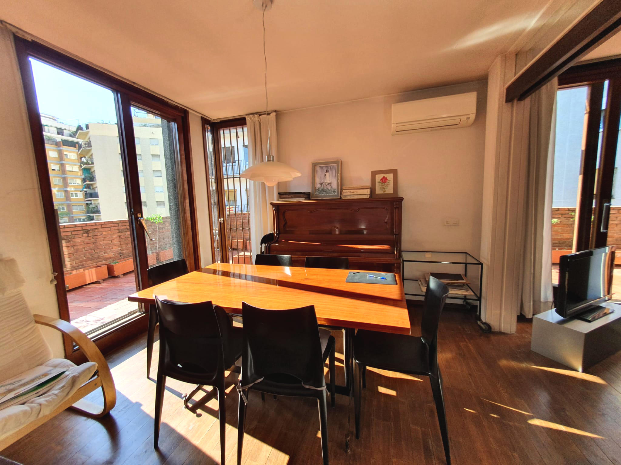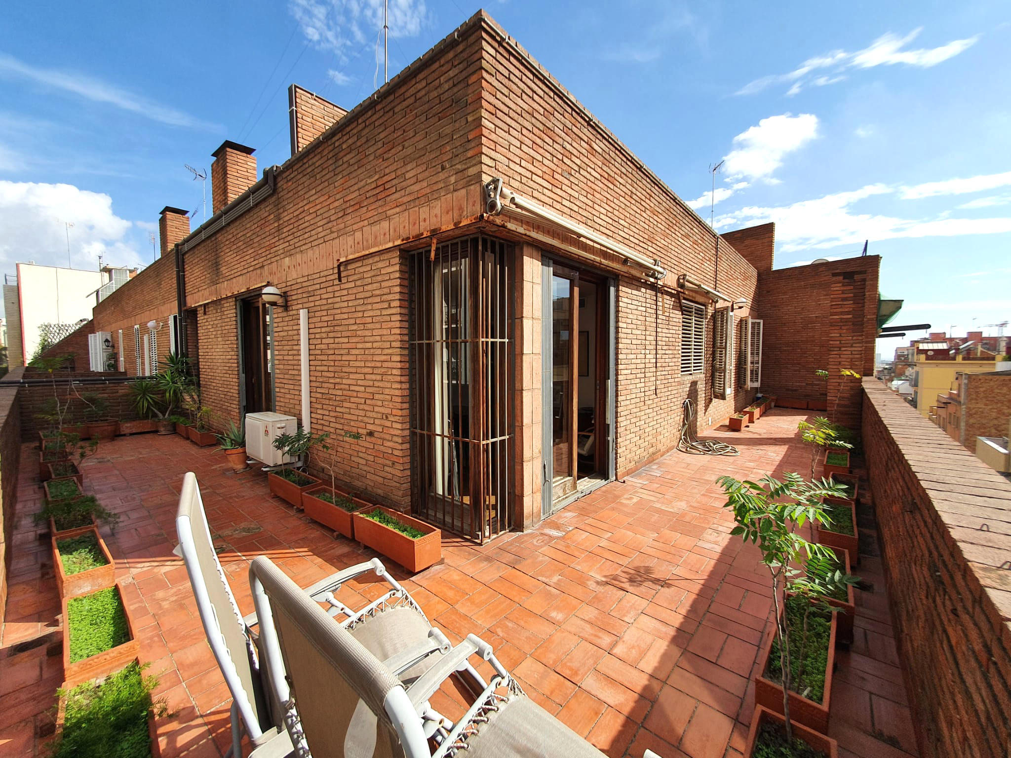 Àtic tipus dúplex totalment exterior, amb doble orientació, llum natural a tot l’habitatge i sol tot el dia. L’habitatge (141m2 segons cadastre) ocupa la planta Àtic i Sobreàtic de l’edifici i disposa de 4 àmplies terrasses a nivell (130m2 aprox.).