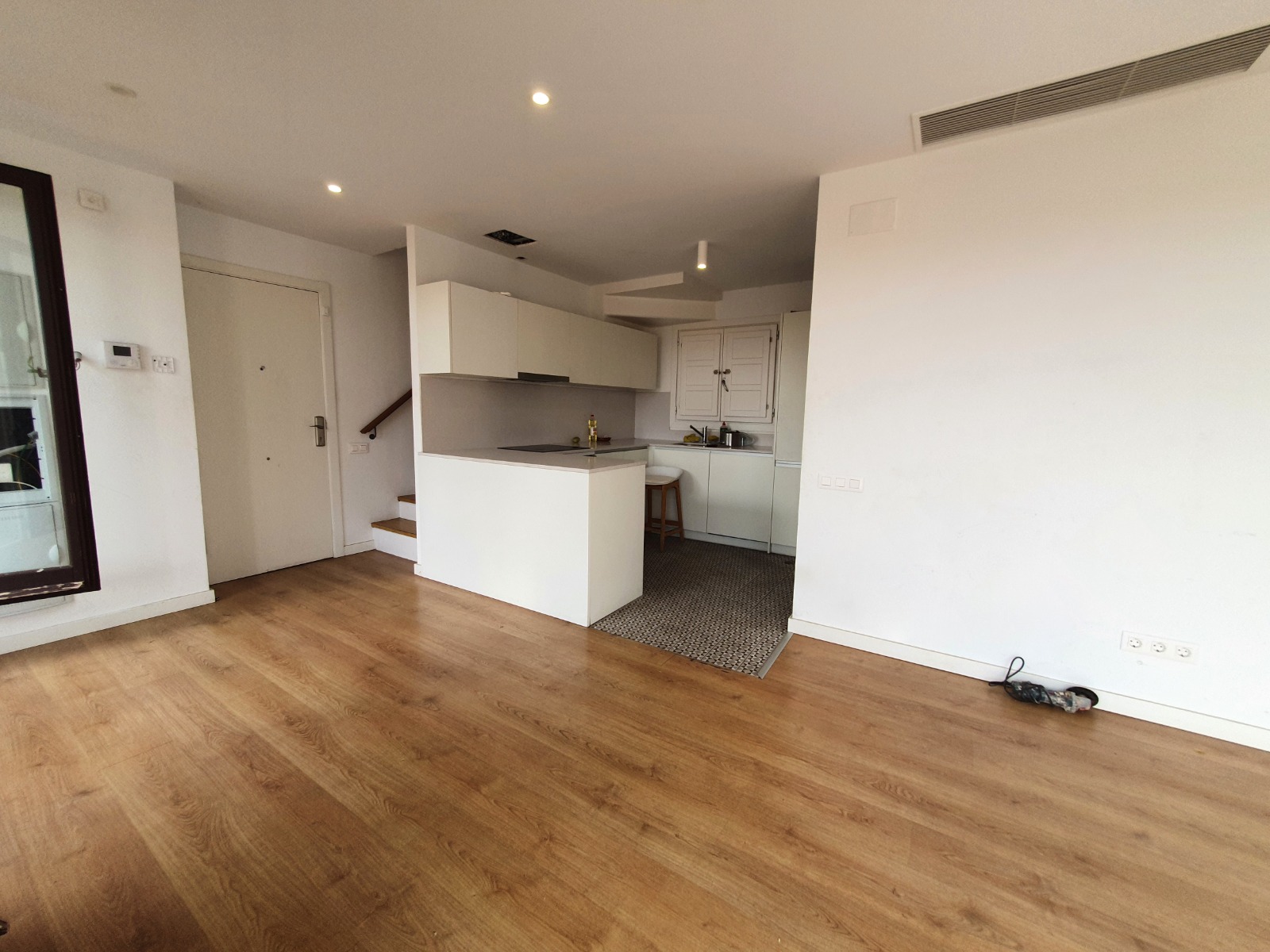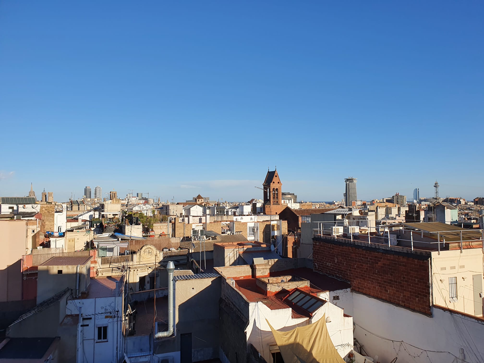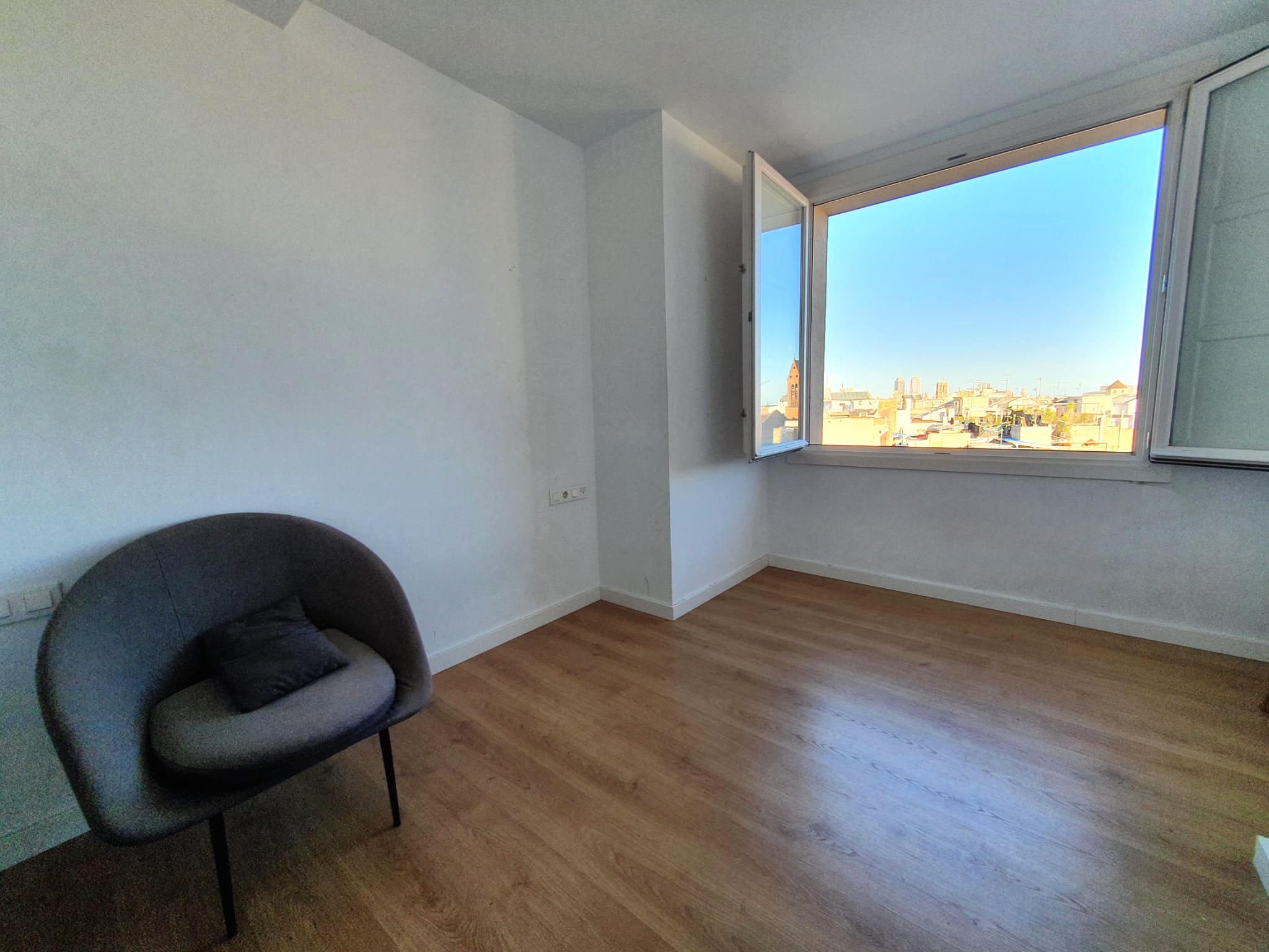 The apartment (90m2 according to the land registry) occupies the penthouse and top floor of the building. It features a luxurious terrace (30m2) seamlessly integrated into the apartment through expansive glass openings, offering spectacular panoramic views of the Barcelona skyline and its iconic landmarks.