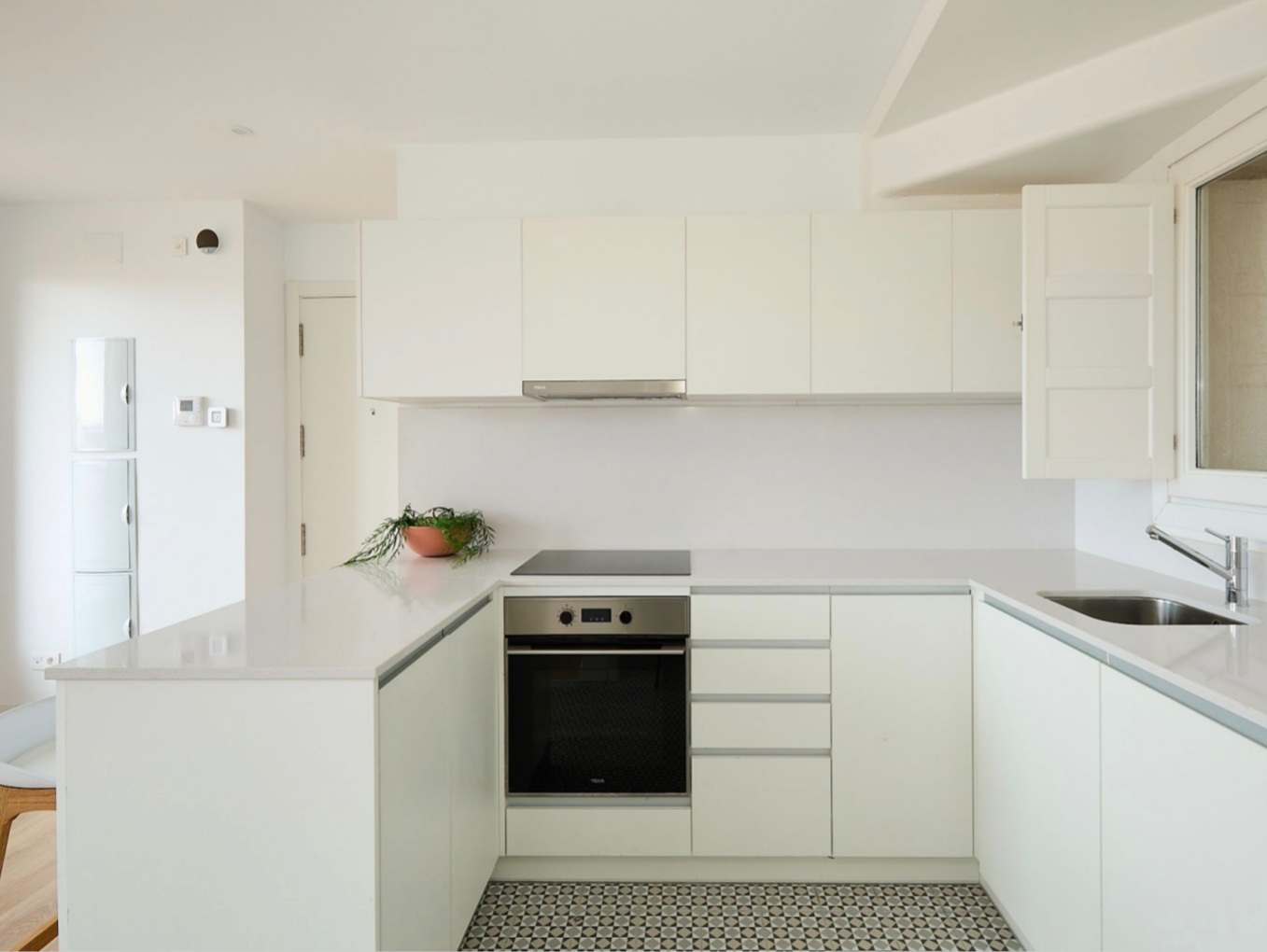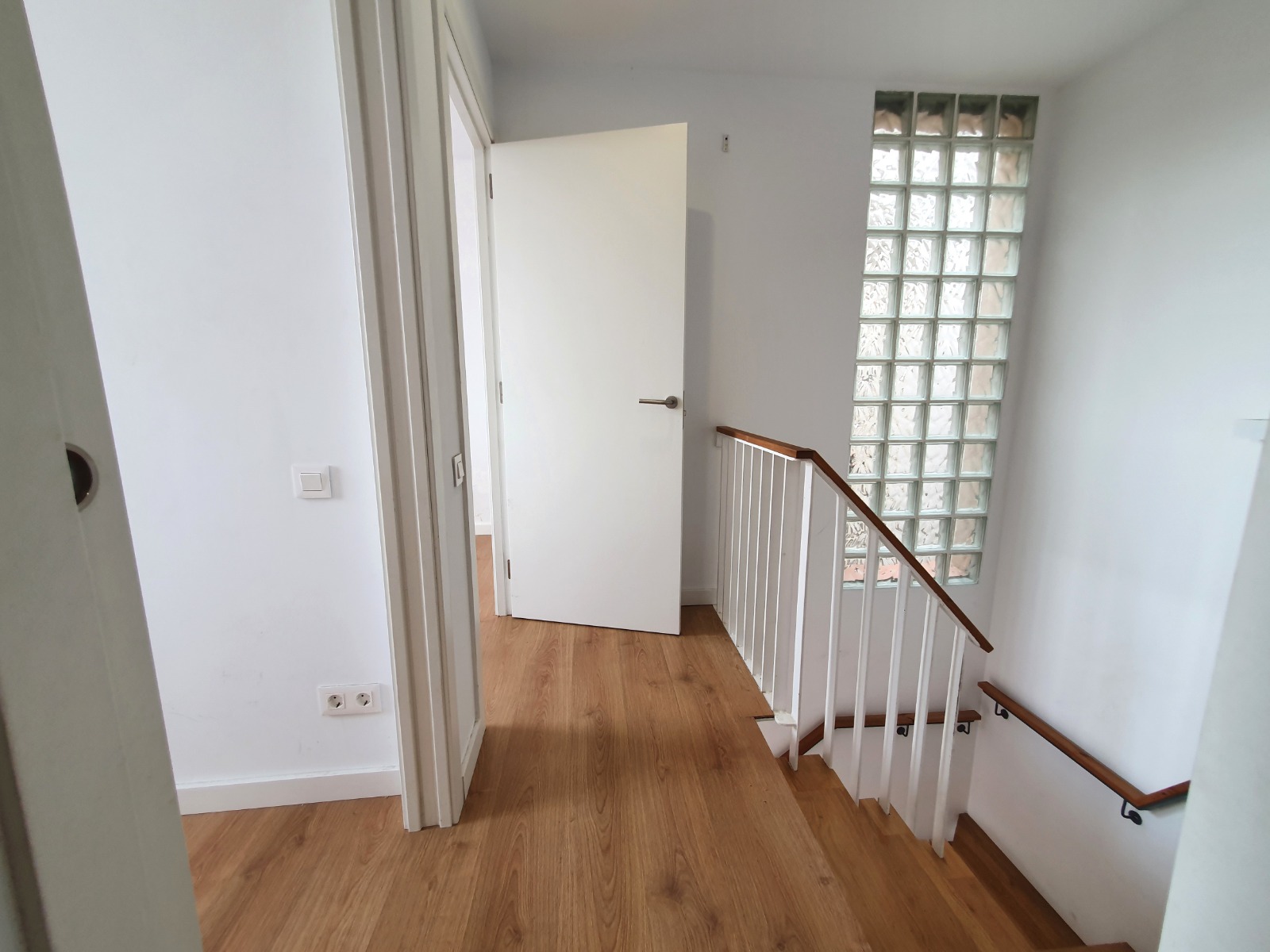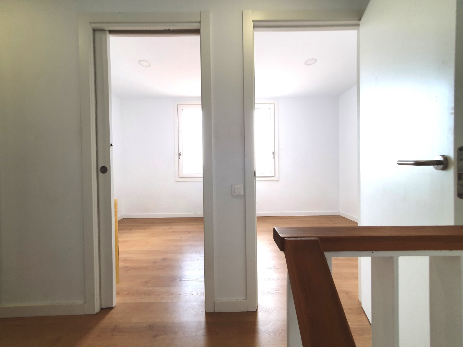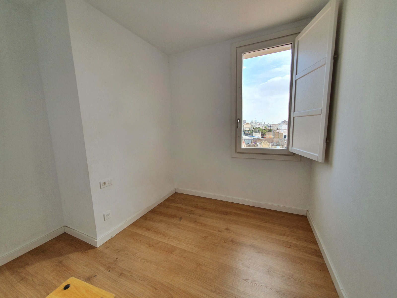 The apartment (90m2 according to the land registry) occupies the penthouse and top floor of the building. It features a luxurious terrace (30m2) seamlessly integrated into the apartment through expansive glass openings, offering spectacular panoramic views of the Barcelona skyline and its iconic landmarks.