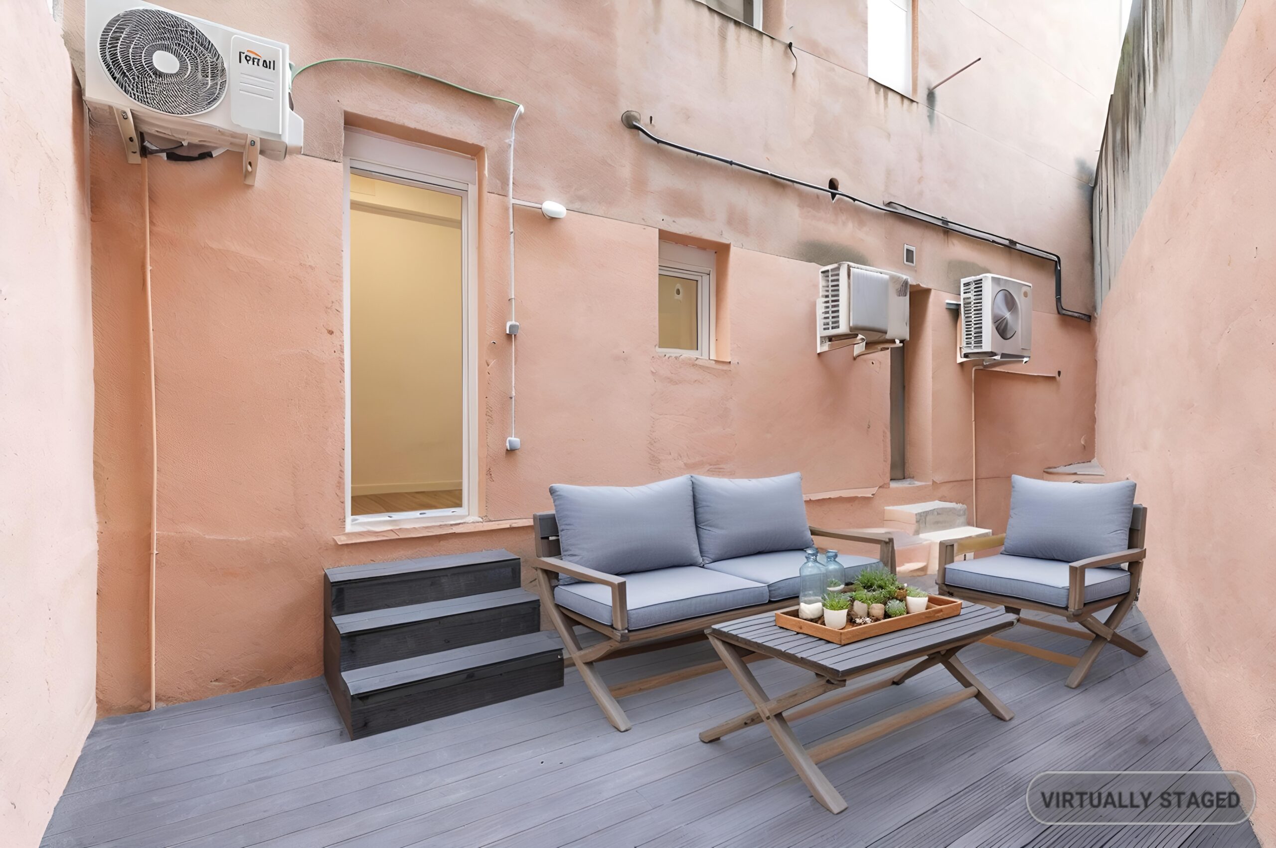 The second room has space for a sofa or bed and a desk. It also offers direct access to a spacious patio/terrace where you can enjoy Barcelona’s climate.