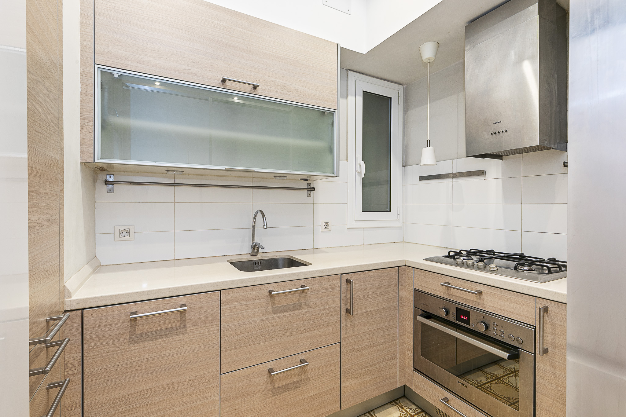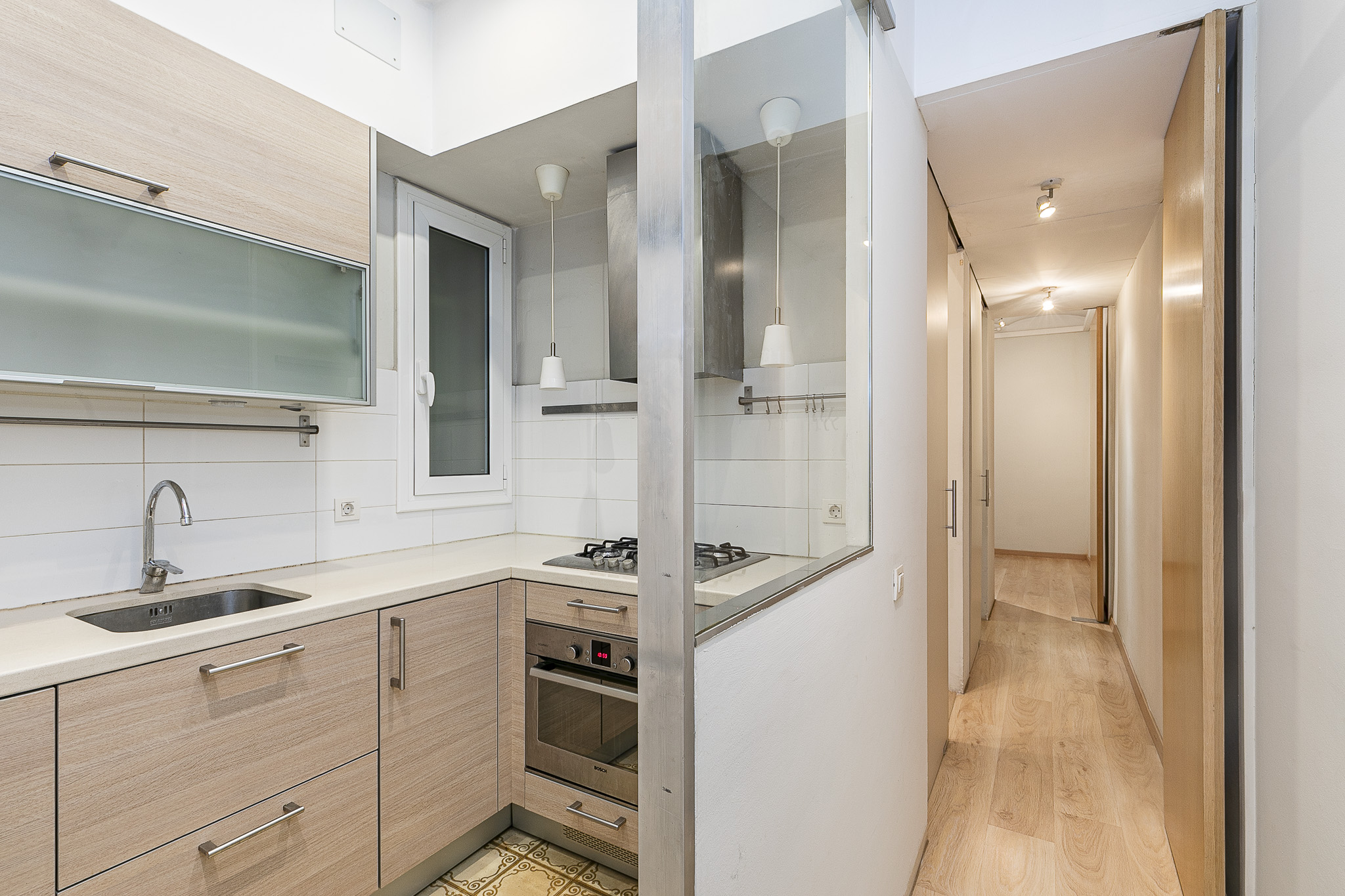 Pieza minuciosamente restaurada que combina elementos originales de época con la practicidad de la actualidad: techos altos con voltacatalana, suelos hidráulicos en zona de aguas, ventanas originales con doble cristal.