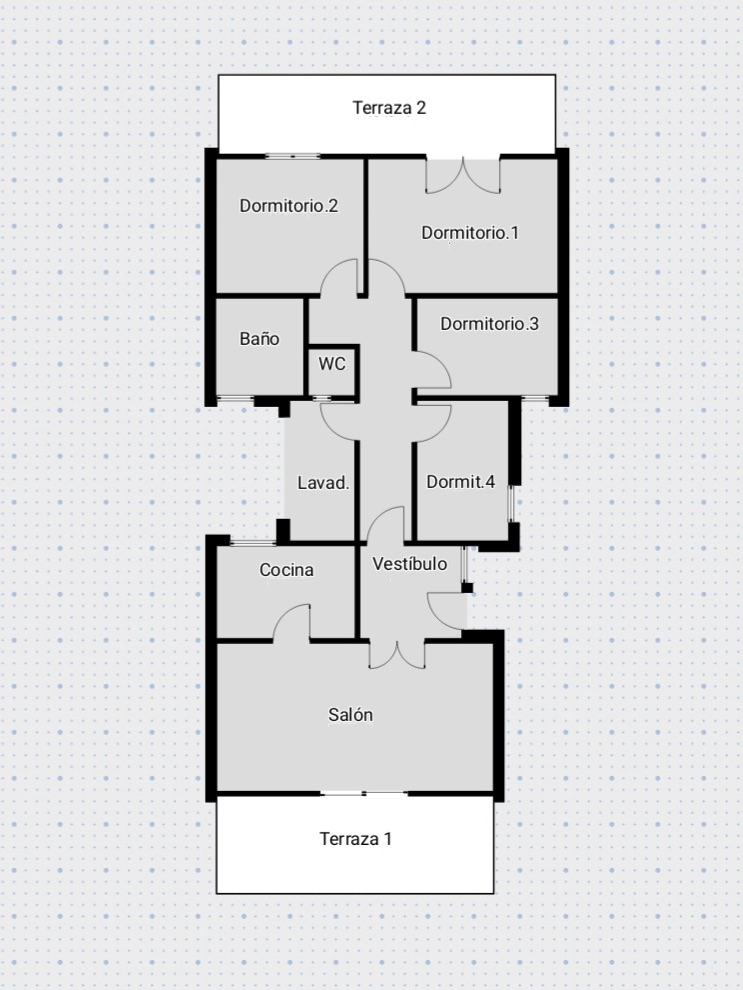 Zona noche: 4 dormitorios (2 dobles y 2 individuales), 2 baños y terraza orientada a patio de manzana. Nota: el baño pequeño se puede ampliar por la zona lavadero.